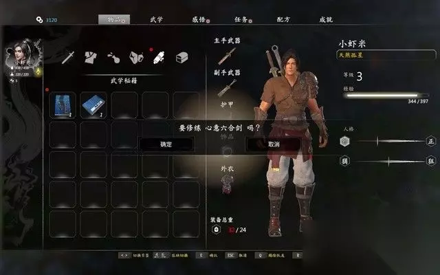 随后,大叔会送你一本武功秘籍,要记得在装备菜单中装备你心仪的武功秘籍, 只有装备了该武功秘籍,你的战斗经验才能给予到该武功中。