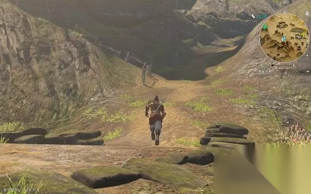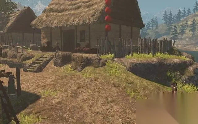其实,这游戏从高处落下是不会掉血的,所以,直接从悬崖上跳下去就行了, 只要根据小地图往下跳,就能找到刚刚发现的村庄了。