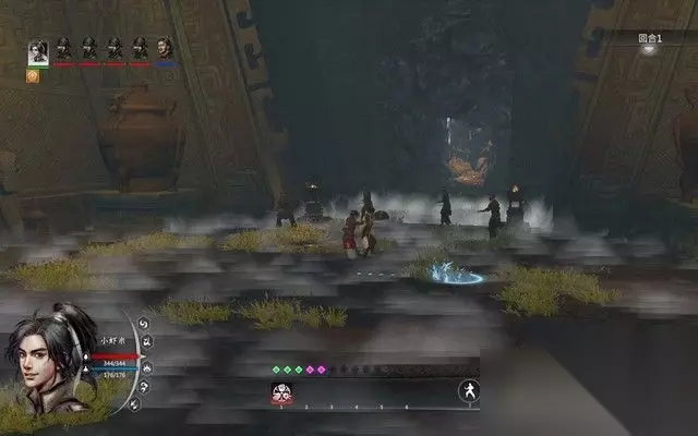 步骤5: 跟着大叔走到神庙出口之后,主角一行被黑衣人堵住, 随后就是一场战斗。