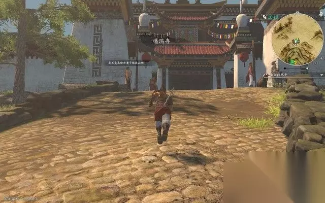 步骤3: 根据小地图沿着山路一直走,到达葛玛寺,以便寻找偷窃金瓜贡茶的老头。