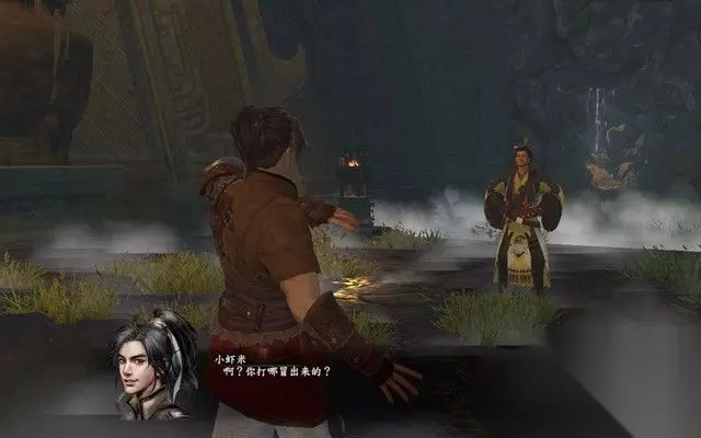 步骤1: 一开场,主角从天上掉了下来,掉到了一个未知的神庙中, 小虾米环顾四周,发现自己并没有回到现代世界,反而依然置身于武林世界中, 无奈,小虾米只好认清事实,往神庙的出口走去。 突然,一个神秘大叔突然出现并攻击小虾米,小虾米随即开始还击,奇怪的是, 自己竟然忘记了所学的所有武功!