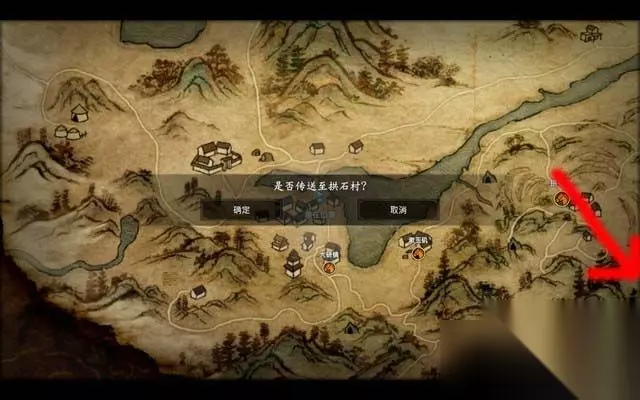 步骤7: 在石拱村的东南方向可以找到一条河,沿着河走到尽头,即可发现沼泽。