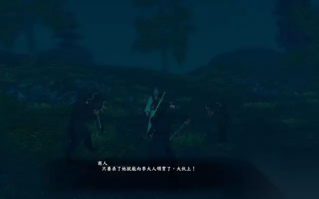 步骤9: 在去擎天寨的路上,会遇到一群假装成商人的刺客, 这些黑衣刺客向拿你的人头领赏,击败他们之后,继续赶路。