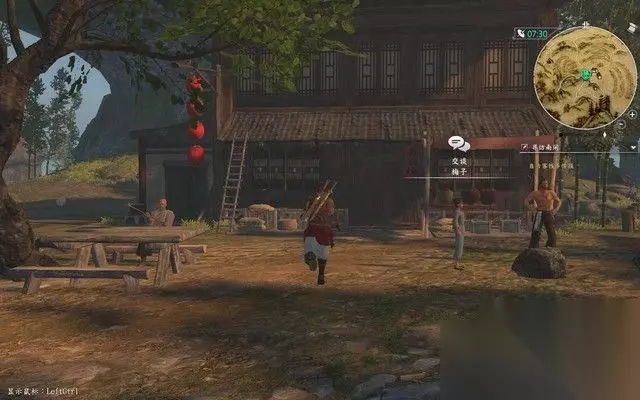 这里要特别说明一下,在和乡勇会面之前,小地图的指示是错误的, 会将你指引到很远处的大研镇的酒馆中,在这里你是无法推进剧情的。