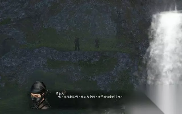 步骤2: 虽然黑衣人战斗力很渣,但是他们意志很顽强,对主角一行穷追不舍, 最后,将小虾米和大叔逼到了悬崖底下,幸好悬崖底下是水,不然,主角就死定了。 看到我们掉下了悬崖,黑衣人以为我们死定了,于是就走开了。