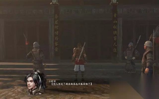 步骤2: 去后门偷听里面的人的对话,可以知道,茶楼的主人丢失了一批重要的货物――金瓜贡茶。 主角心想,既然金瓜贡茶如此重要,不然我帮忙寻回, 说不定茶楼的主人知道南闲的线索呢。