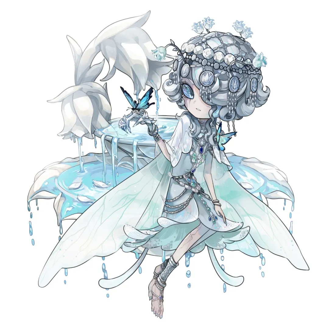 透明的翅翼生长着幽蓝的脉络,垂落的水晶兰好似颤动的触须,随着她的身影明灭闪烁。