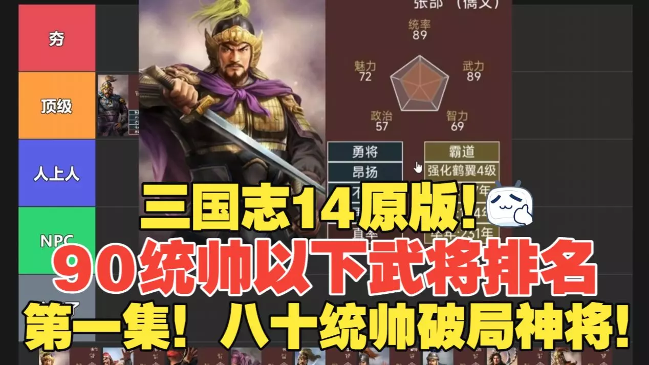 注:排名标准 在原版顶级高难剧本前提下 90统帅以下武将 阵型 个性 五维 技能 朋友圈 使用率(登庸难度加大分) 武将性价比 设计强度 实际游玩体验的综合排名…