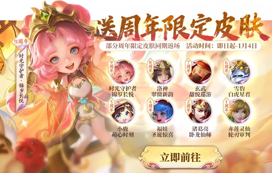 积攒足够数量的守护币,即可兑换万众期待的周年限定皮肤!