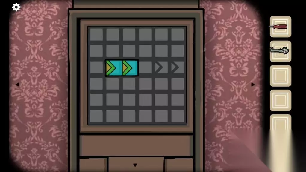 6.按照字母弹完以后,你以为完成了吗不!从钢琴中伸出一只手,这只手怎么弹你怎么弹,如果忘记点的哪个键了可以点一下手它会再给你弹一次。成功后会给你一把钥匙。 7.还是在有钢琴的房间中有一个柜子点击柜子,我们要玩一个类似于华容道的游戏。(就是你需要把通过拖动方块放到箭头的位置上才能通过)