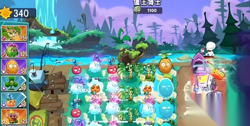 一阶段的小boss击败之后会进入第二阶段,第二阶段的boss会开始召唤气球僵尸,应对气球僵尸的方法很简单,只需要种上三叶草就可以将空中的僵尸进行强势打击,前排也可以将坚果进行种植来进行前方的强悍防御让后排可以安心输出。