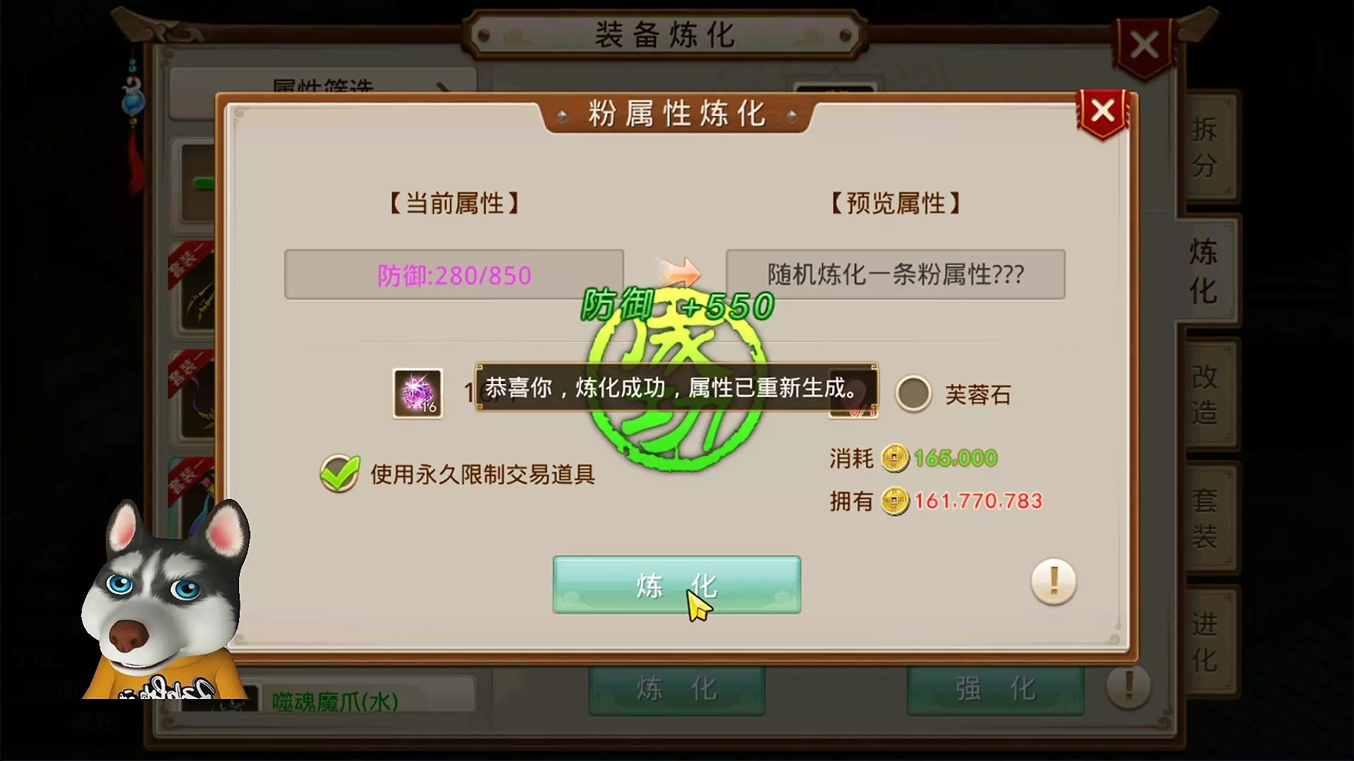 这是一期问道手游的游戏解说,博主挑战用20w元宝打造两件世道敏水装备,过程中进行了装备黄属性炼化、粉属性炼化、套装炼化等操作,展示了装备炼化的具体界面与消耗。