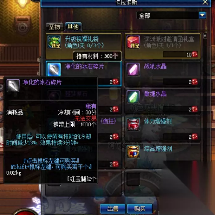 依次递增 好感度各阶段奖励介绍 每个角色最多只能与3名NPC达成最高好感度。当与NPC达成最高好感度时,开启以下NPC功能: NPC时装染色功能 点击对应NPC会出现NPC染色选项,选择该选项后会弹出染色菜单,玩家可以选择不同的部位进行染色预览以及进行染色操作。 乱入地下城 通关地下城时,原有的德利拉位置会随机出现玩家好感度最高的几个NPC中的1个。组队情况下,队长可以看见出现的npc。 部分npc不会出现在特定的任务或者剧情地下城中. 特别台词 玩家经过最高好感度的npc身旁时,npc会弹出特殊对话。3. 注意事项1)只有特定的npc才能被提高好感度。 无法继续对好感度100%的npc赠送礼物。 如果在一定时间内没有继续赠送礼物给最高好感度的npc的话,好感度会下降。 不同npc达成亲密,喜爱的好感度的难度是不同的。 玩家无法与同性的npc实现最高好感度。 好感度各阶段奖励介绍 每个角色最多只能与3名NPC达成最高好感度。当与NPC达成最高好感度时,开启以下NPC功能: NPC时装染色功能 点击对应NPC会出现NPC染色选项,选择该选项后会弹出染色菜单,玩家可以选择不同的部位进行染色预览以及进行染色操作。 乱入地下城 通关地下城时,原有的德利拉位置会随机出现玩家好感度最高的几个NPC中的1个。组队情况下,队长可以看见出现的npc。 部分npc不会出现在特定的任务或者剧情地下城中. 特别台词 玩家经过最高好感度的npc身旁时,npc会弹出特殊对话。3. 注意事项1)只有特定的npc才能被提高好感度。 无法继续对好感度100%的npc赠送礼物。 如果在一定时间内没有继续赠送礼物给最高好感度的npc的话,好感度会下降。 不同npc达成亲密,喜爱的好感度的难度是不同的。 玩家无法与同性的npc实现最高好感度。 好感度各阶段奖励介绍 每个角色最多只能与3名NPC达成最高好感度。当与NPC达成最高好感度时,开启以下NPC功能: NPC时装染色功能 点击对应NPC会出现NPC染色选项,选择该选项后会弹出染色菜单,玩家可以选择不同的部位进行染色预览以及进行染色操作。 乱入地下城 通关地下城时,原有的德利拉位置会随机出现玩家好感度最高的几个NPC中的1个。组队情况下,队长可以看见出现的npc。 部分npc不会出现在特定的任务或者剧情地下城中. 特别台词 玩家经过最高好感度的npc身旁时,npc会弹出特殊对话。3. 注意事项1)只有特定的npc才能被提高好感度。 无法继续对好感度100%的npc赠送礼物。 如果在一定时间内没有继续赠送礼物给最高好感度的npc的话,好感度会下降。 不同npc达成亲密,喜爱的好感度的难度是不同的。 玩家无法与同性的npc实现最高好感度。 第二卡拉卡斯换取药剂以及每日15张深渊邀请函。 在完成每日的使命任务后可获取任务品红玉髓,收集材料则可以在酒馆卡拉卡斯商店换取自己心怡药水以及深渊邀请函。