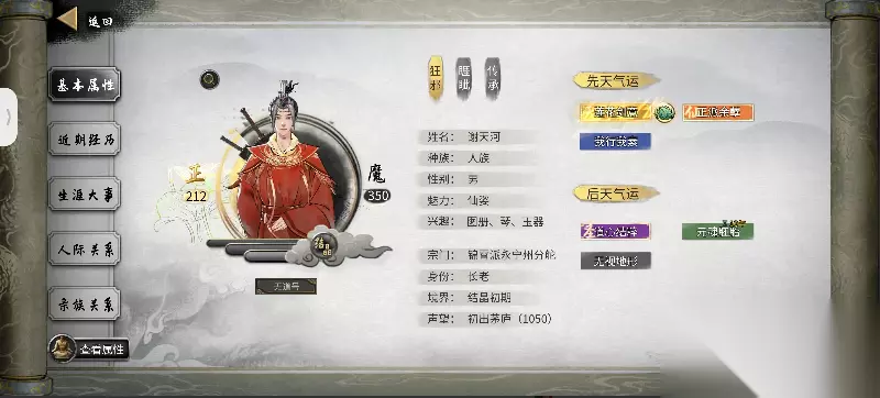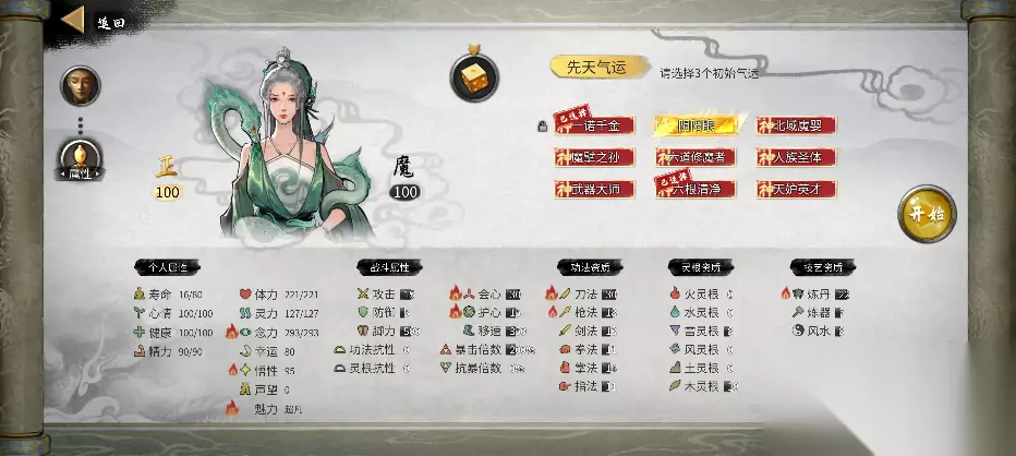 接下来刷第二个气运。我推荐鬼谷外门和一诺千金。鬼谷外门效果为攻击力+10,悟性+30,声望+150,魅力+100,在前期能提高很高的属性加成,有助于度过前期。而一诺千金则是给你一个好感度满的忠贞道侣,而且很好看,有了这个气运不用怕被绿,同时道侣也会不时给你送点东西,我个人倾向于一诺千金。如果你能同时刷到鬼谷外门和一诺千金算你好运。我们已经锁住了第一个气运,所以如果刷出鬼谷外门或者一诺千金,那么也会刷出其他气运,现在可以选择第三个气运了。那么第三个气运可以随便选择一个带攻击力加成的红色或者橙色气运,有助于前期发育。 PS:玩剑 还得一直刷 高悟性 高剑 还有刷气运莲花剑心 阴阳眼弄个高悟性就行什么流派都能用! 莲花剑意能出 哪些莲子 网友:遇到一个很有意思的 能力有一个莲花剑意有概率给一个七彩莲子效果是给残魂重塑肉身 后面遇到一个事件是一个2个登仙打架 输的那个收你为徒 然后要你在50年内达到羽化给他冲塑肉身 后面想了想把那个莲子给她看看 没想到还真成了给了一堆羽化丹药。 网友:现在只出了三颗彩色莲子一颗青色莲子三十颗红色莲子跟二十七颗橙色莲子,这红色跟橙色有毛用啊放那个NPC才不会被判定失败。