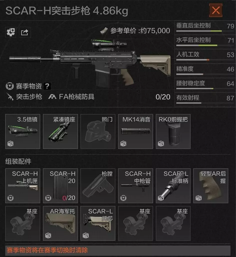 80+的后坐力控制,配上近70点的人机,作为赛季枪械造价还不高,手感稳稳的,让人直呼真香!