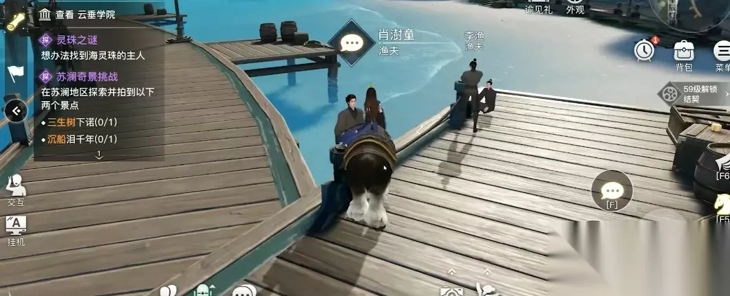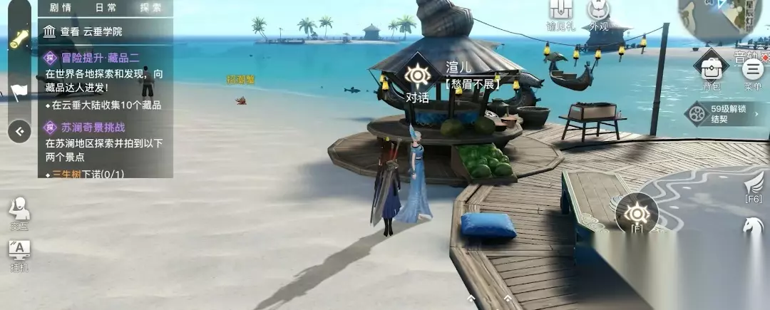 5、前往海边的指定坐标位置(525,285),在这里可以找到一位渔夫,靠近之后交互对话;