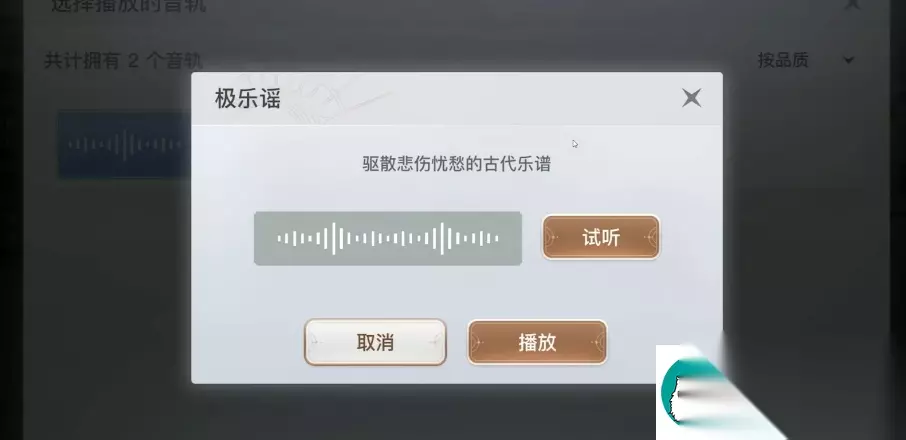 11、这时候我们选择为其播放欢快的音乐极乐谣,可以抚慰渲儿的心情,再次对话即可完成任务。