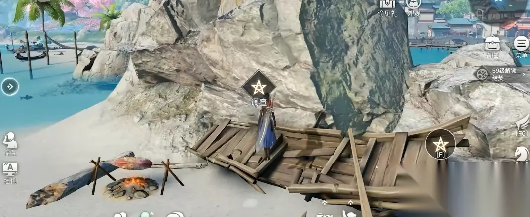 2、靠近破船之后,点击调查小船;