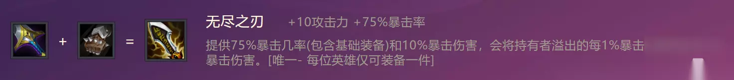 一、普通装备 1、无尽之刃 暴风大剑+暴击手套=无尽之刃