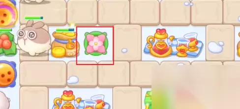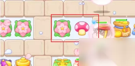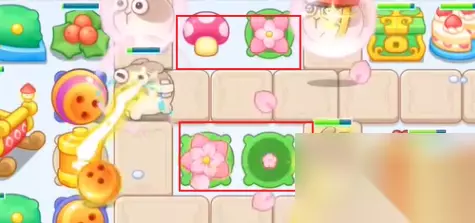 5、上方摆放蘑菇和花朵炮塔后,往其下方位置补充一个花朵炮塔。