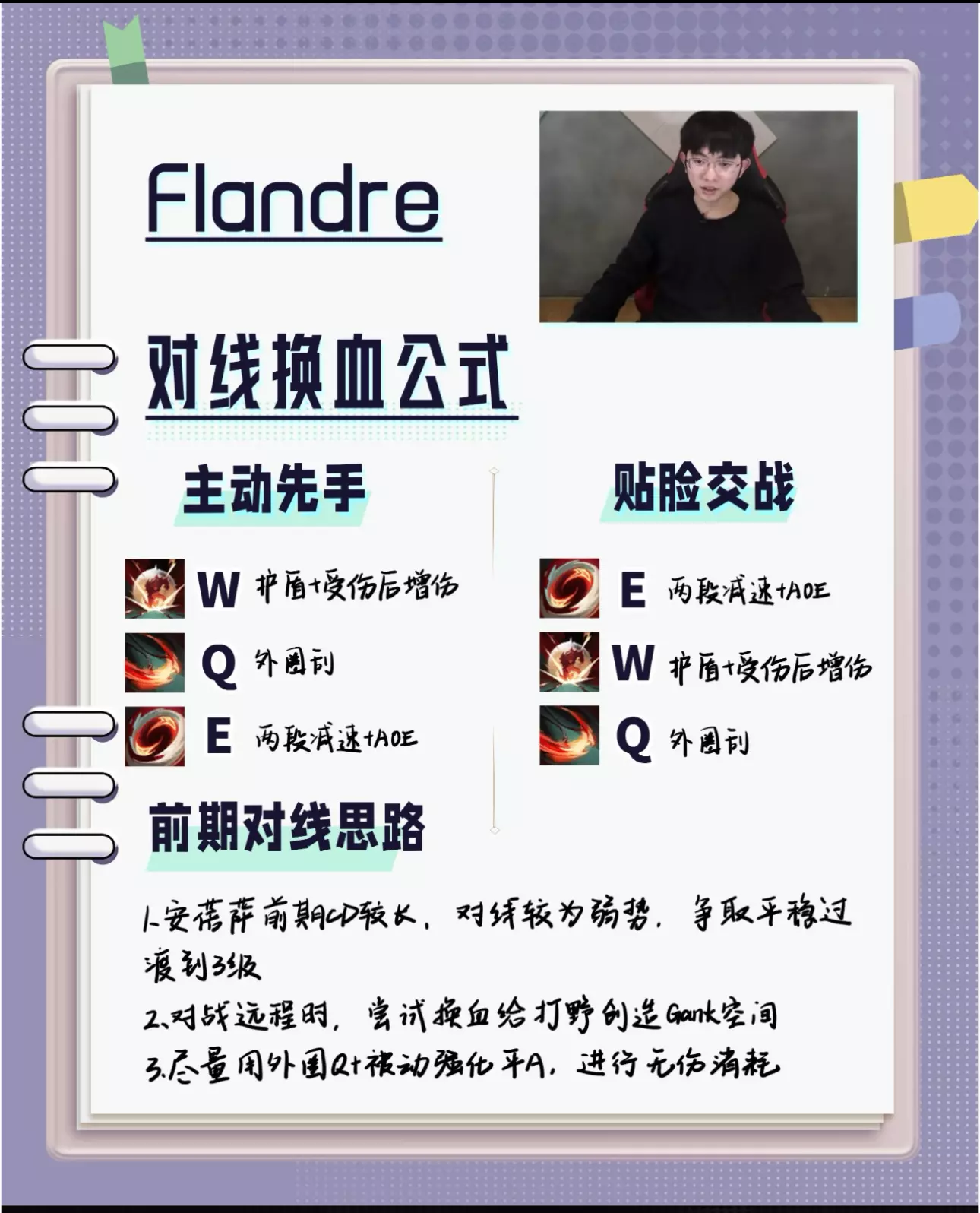 还在苦恼技能介绍太复杂看不懂吗?还在担心学不会安蓓萨吗? 赛赛整理了安蓓萨的技能简介,帮助大家一眼看懂技能机制!内附符文装备和技能加点哦~ 快@你的朋友们来学吧! [派对R]召唤师们还想看哪个英雄的攻略呢?快点告诉赛赛吧~ [种草R]被提及较多的英雄会更快跟大家见面哦~ 也不要忘记给赛赛点个关注哇~ #LPL #英雄联盟 #电竞 #游戏 #安蓓萨 #theshy #flandre #攻略 #游戏攻略 #2024LPL