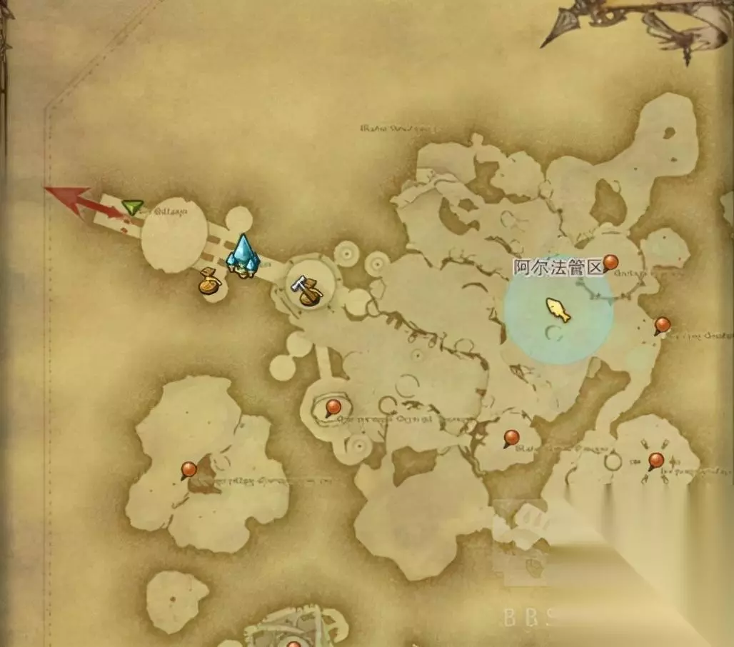 钓场:冠毛大树——魔大陆阿济兹拉 (X: 7, Y: 35) 鱼种:点火鱼(中杆)水剑鱼(中杆)以太之眼(轻杆);