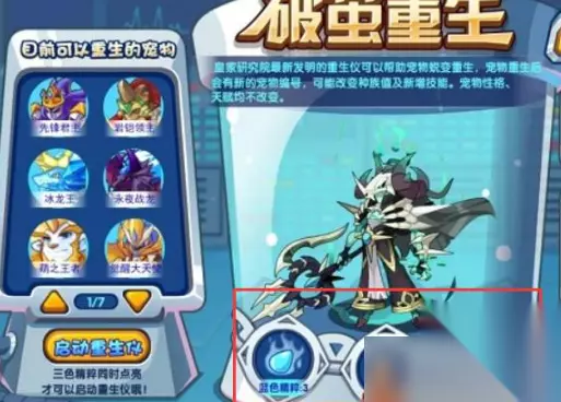 宠物不同的话破茧重生需要的精粹也不同。 先锋君主:橙色精粹1、紫色精粹1、蓝色精粹1 。