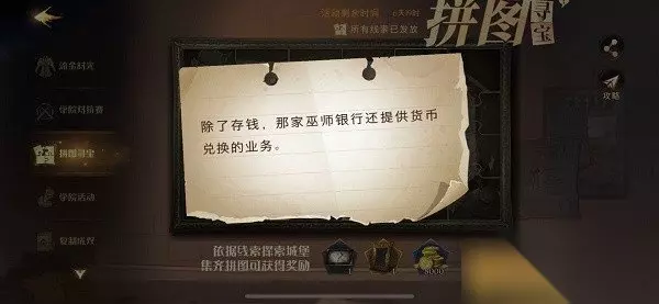《哈利波特:魔法觉醒》拼图寻宝活动第五期第八天攻略介绍 拼图信息一 除了存钱,那家巫师银行还提供货币兑换的业务碎片。
