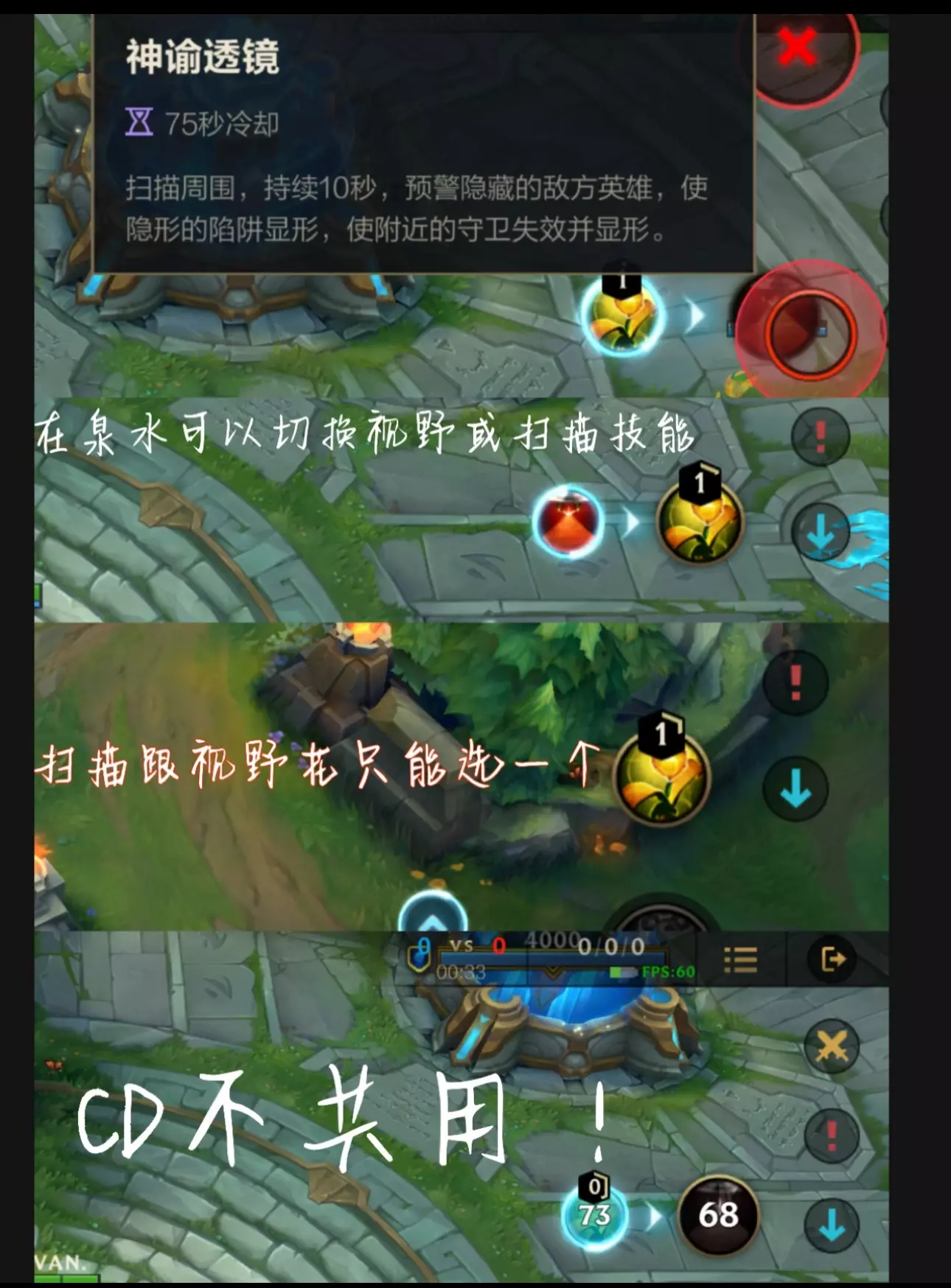 插眼学会了 就开始开学排眼啦~📝 排眼对于王者玩家也不陌生 可以理解为百里的眼! 插眼插的好 整个开地图上帝视角 排眼排的好 对方随便蹲随便抓 美滋滋🤳🏻🌝🌝 排眼名词解释:让敌方插的视野花显现出来再排除掉💥 📎排眼🛠:扫描也叫神域透视( 图一 1️⃣ 在扫描的范围内,只要有敌方插的眼石,就会现形,届时我们就能用普攻将对面的眼排除掉。🚷 2️⃣ 一般来说,扫描眼都是辅助英雄带的,主要是将一些获取视野的重要点位里面的眼排除掉,防止敌方轻易获得我们的行动视野。排眼为了削减对面的视野优势。 3️⃣扫描期间还会预警隐藏的敌方英雄⁉️ 比如对面是提莫蘑菇 或隐身状态,或者在蹲草丛,都会受到一个预警提示,在探草丛的时候也是可以用的。 3️⃣总结:⭕️扫描的作用就是看周围有没有眼,如果有的话就能将其排除掉,方便扩大视野优势⭕️ 🖇如果我方在对线期已经有很大的优势,那么中单就可以换扫描了。可以用作排中路的视野,方便向中下进行支援,而且对方也没有视野,不能看到我方的动向,因此我们可以制造的游走压力和抓人的成功率都会有所📈,而且这个方法尤其是对于小鱼人、妖姬、男刀这种有高爆发和很好的灵活性的英雄更加适合。🔍 💡💡:排眼技能跟插眼只能选一个!但是回家可以换!但是没必要频繁切换 也注意用的方法👏🏻👏🏻 #英雄联盟手游 #LOL #视野 #英雄联盟视野#王者荣耀 #甜蜜双排 #手游