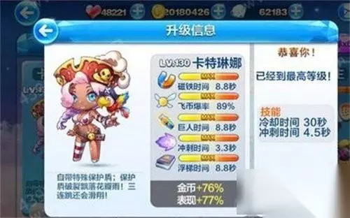 怎么获得 卡特琳娜的获得方法有两种:一是在公会商城花6000公会币购买;二是平民最常用的办法抽奖。 卡特琳娜属性 等级上限:130级 磁铁时间:8.8秒 飞币爆率:89% 巨人时间:8.8秒 冲刺时间:3.3秒 浮梯时间:8.8秒 技能 自带特殊保护盾(可以主动让保护盾破裂)保护盾破裂飘落花瓣雨,障碍物在花瓣雨的状态下会变成高分救生圈和酒桶; 三连跳后滑翔。 可以说这是一款女版齐天大圣,但是她少了专属奖励模式,不过在破盾的情况下得分也是不错的。而且这款角色可以选择主动破盾,开局可以有两个盾哦!但是好像也没什么卵用。 卡特琳娜值得入手吗? 卡特琳娜的技能就是升级版的小飞+齐天大圣的结合版。小飞自带保护盾,卡特琳娜也是,不过比起小飞卡特琳娜的技能明显更先进一点,多了一个主动破盾的功能,保护盾破了还会充满少女心地飘花瓣雨哟~。齐天大圣凭借三连跳+滑翔的技能在酷跑界称王称霸,童话世界里无法无天的“孙猴子”到了游戏世界强势不改,可见三连跳+滑翔的技能实用性非常大,相信卡特琳娜除了保命能力强,得分能力应该也还不错,可是期待着这个热情的小辣妞的精彩表现哟。 如转载涉及版权等问题,请作者与我司联系,我司将在第一时间删除或支付稿酬。