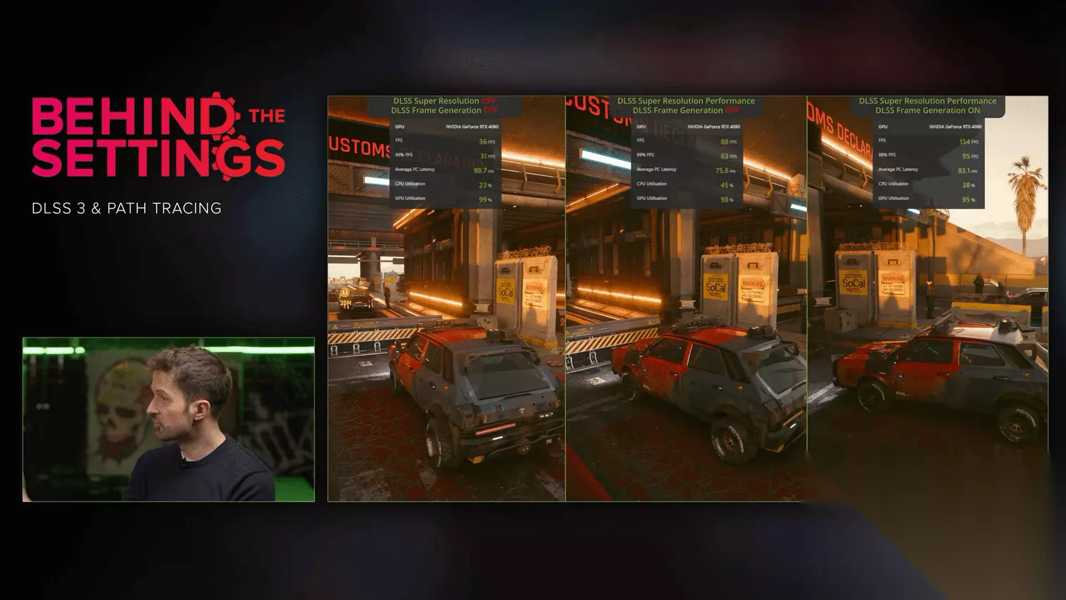 《赛博朋克2077》全景光线追踪配置需求一览 《赛博朋克2077》的全光追更新即将上线,借助全景光线追踪和RTXDI,现在几乎所有光源都能投射出物理属性准确的柔和阴影,这是使用以前的方法时所无法想象的。 玩家将体验到每个像素都完美呈现的阴影效果,而且这些阴影更具立体感、更加细致入微、更加逼真。