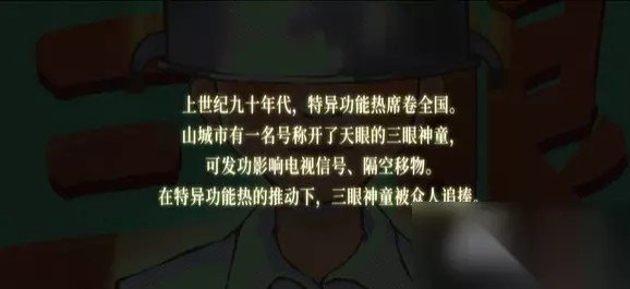 三伏是一款中国本土题材的悬疑剧情解谜游戏,在90年代,特异功能热席卷全国,山城市出现了一名号称开天眼的三眼神童,能够利用特异功能影响电视信号、隔空移物等等。本作就是依据传闻中的三眼神童为题材展开描述的。