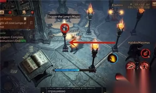 暗黑破坏神不朽点亮九盏魔法灯任务完成攻略 在暗黑手游中有一项主线任务是遗失的符文,需要玩家在藏书馆地图中将九盏魔法灯全部点亮。 有不少玩家都不知道这个点燃九盏灯的任务该怎么做,想要知道正确的点灯顺序是怎么样的。 点亮一个灯的同时会东南西北四个方向发射火球,火球如果碰到已经点亮的灯,那么就会熄灭。 点九个火把时请依次点亮四周的四个角落的火把 再点亮最中央的。如果点错可以重置! 按照时针顺序将四个角落的火把都点燃之后,再点燃中间的,就可以了。 首先点燃中间的魔法灯。