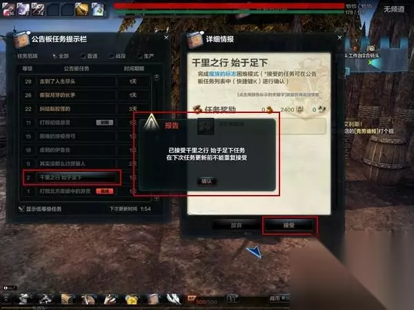 3、每天公告板任务每天只能接去一次。 当接取公告板任务后,玩家在没完成任务状态下舍弃任务后,在每日任务升级前,不能重复接纳。
