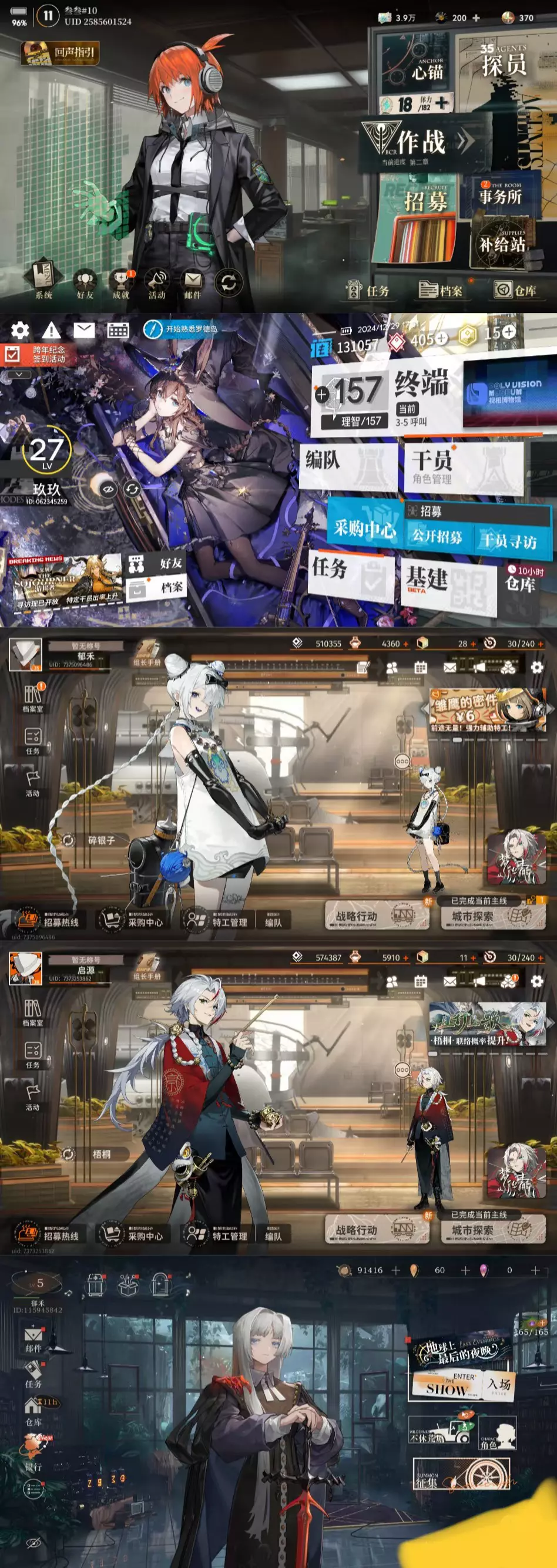 美术都好好看,卡面都好喜欢,剧情我全跳过的,说一点游戏感受,按图排序,图是相册排的[笑哭R] 1、异象回声,昨天刚玩的,今天又开了一个号还没开始玩,抽卡看起来中等偏欧?目前正在大保底中。关卡等级卡的有点严格,30级关卡的用25级卡就打不过去,主线第二章就要30级了,养卡资源不太能跟上。这游戏开服没多久,可以试试攒图鉴。游戏比较卡,每次进游戏进关卡下面进度条都得走好久。 2、明日方舟,玩了不到两周,是这图里玩的最久的了,抽卡还挺欧的。因为游戏开服时间太久远,已经不追求图鉴了,目前xp抽卡中,不过攒资源蛮难的,总共也没抽多少,现在不动源石,根本攒不到6000合成玉,因为不爱找攻略所以持续卡关中,但没关系,佛系。 3、新月同行,这我是真爱玩了,美术好喜欢,送的也很多,大小号一个9天一个7天,全都打通主线了,都抽了240抽左右,现在攒了也有三四十抽了,可惜没开服就玩。不过龙井快进定向池了,我要攒着等她。 4、重返未来1999,这游戏卡面好看但是挺非的,而且什么池子都不推荐抽,玩着没意思不太想玩了,但昨天刚开了个新号,看看新号咋样,不行一起销号。 还有一个物华弥新,玩了一会儿不太喜欢就删掉了。 #明日方舟#重返未来1999#新月同行#异象回声