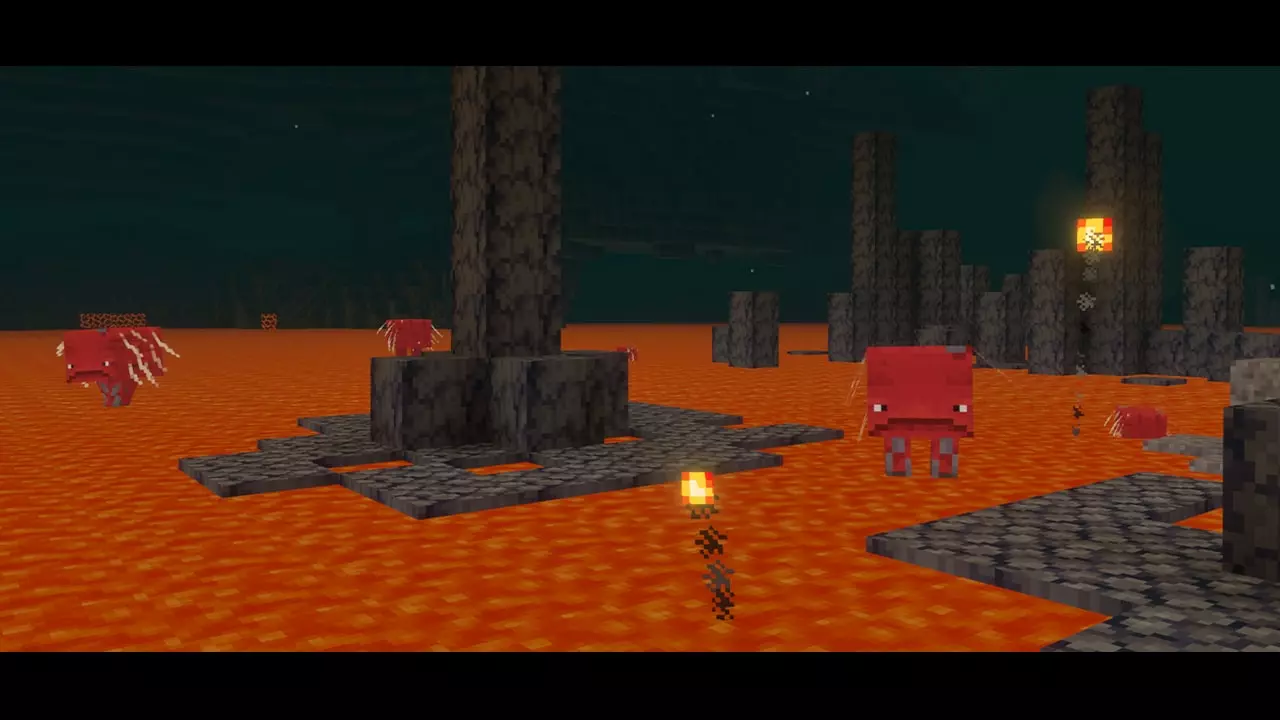 哎呀,我总是忘了下界有多热!我很喜欢,感觉像在水疗中心。四周都是热水浴缸,蘑菇我都发不出名字,到处都是宁静的鳜鹩。嗨——斯特赖迪!我能搭个便车吗?我给你准备了一种美味的变形真菌!我可以从那个熔岩池里360度全景!