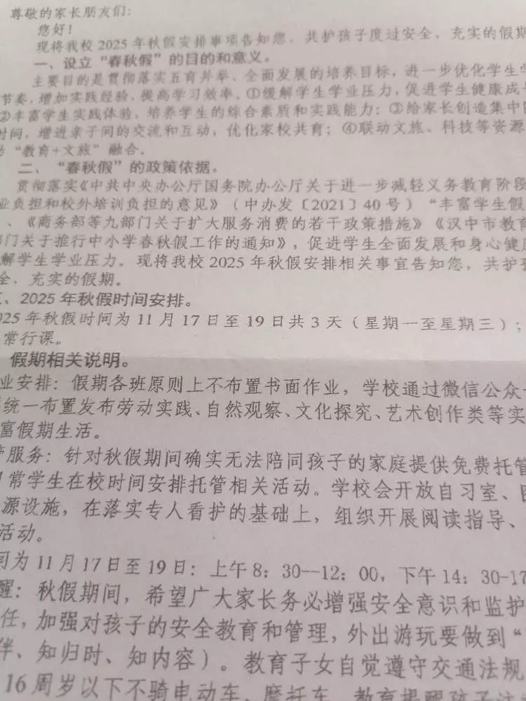 秋假5天哦