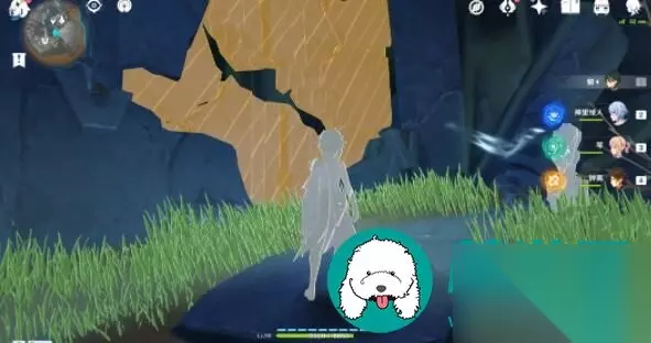 第六个「渊青宝珠」位置: 1、前往下图点位(在上面),可以看见一块破损的墙壁。使用角色攻击,可以破坏掉墙壁。