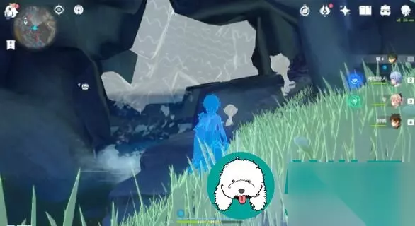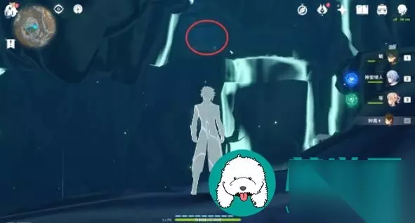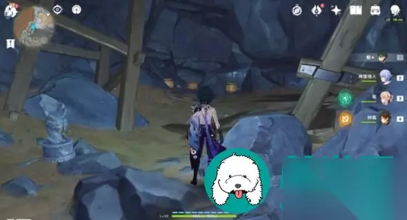 第八个「渊青宝珠」位置: 1、前往下图点位,引爆旁边的“岩丘丘萨满棍子”,可以破坏掉墙壁。