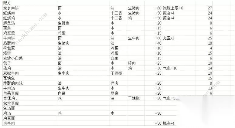江湖余生食物配方一览