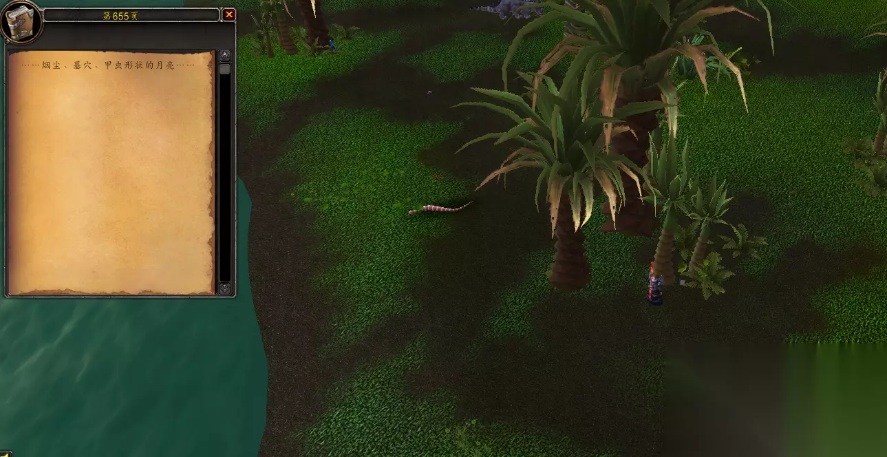 然后来到大灾变时间线的奥丹姆,玩家可以在奥丹姆海岸(70,78)处发现第655页“……烟尘、墓穴、甲虫形状的月亮……”。(如下图)
