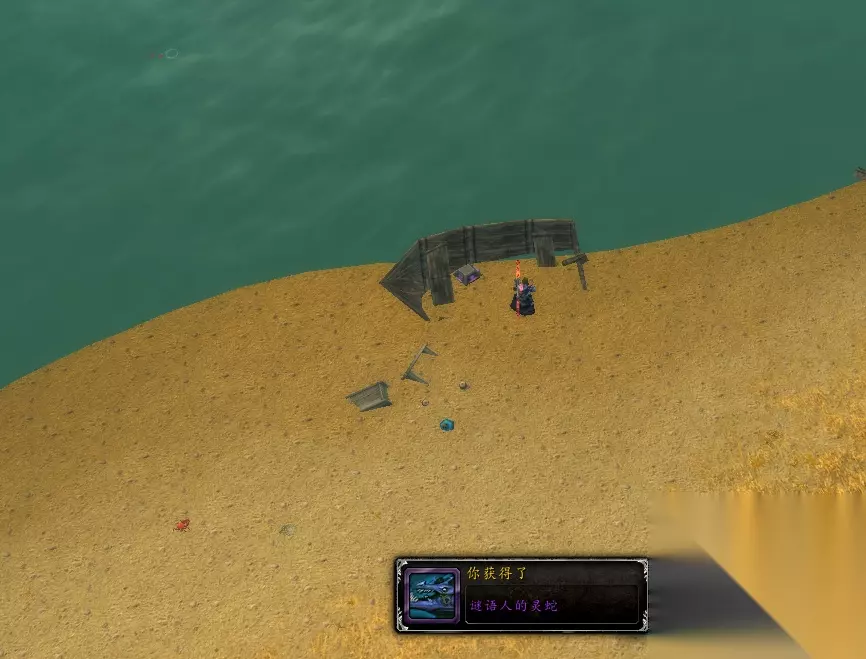 最后来到东部王国的西部荒野(30,27)处可以看到寻心者的礼物宝箱,打开宝箱就能得到[谜语人的灵蛇]。(如下图)