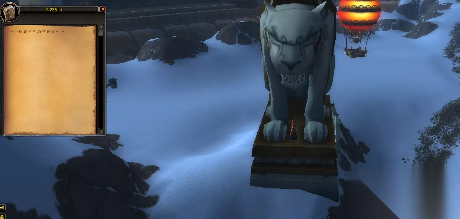 然后来到潘达利亚影踪禅院的白虎雕像下,坐标为(35,51),第2351页“……珠光宝气的守护者……”。(如下图)