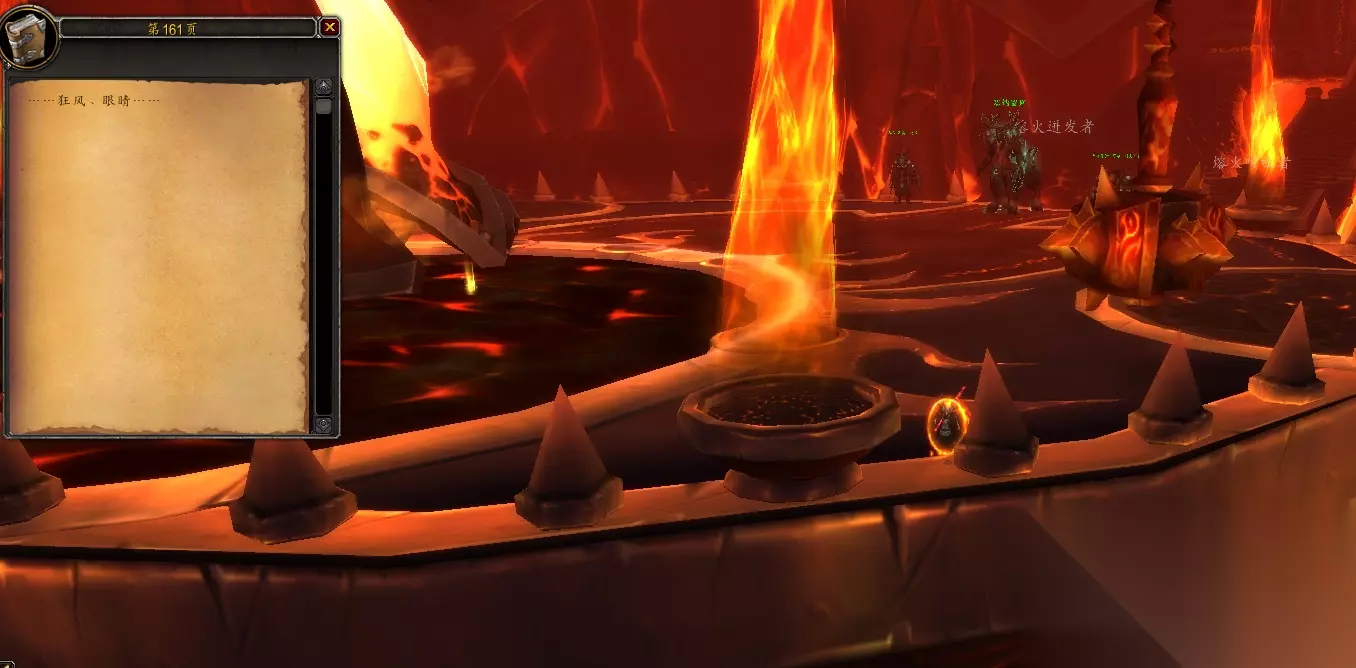 然后来到火焰之地副本最后Boss拉格纳罗斯的场地附近,第161页“……狂风、眼睛……”暗示风神奥拉基尔(如下图)