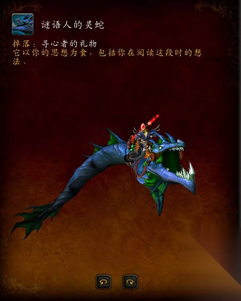 谜语人的灵蛇坐骑模型如图,喜欢的玩家或者有收藏坐骑的爱好者未入手的,可以跟着攻略去拿咯,本人法师,全程花费时间约70分钟(几个副本需要打过去),供参考