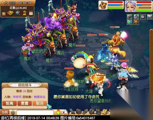 保护猴精,打败对面的妖怪,猴精如果被打飞,那就算保护失败,要重新战斗。这里涉及到一个成就,帮助猴精,一回合营救出苦战中的猴精,输出够猛就可以完成了,辅助就吃点亏了。