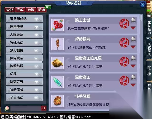 不像以前,进去混一下就可以了,现在有积分要求的。 因为大闹是需要等级100才能刷的,所以等级低的玩家估计就不乐意刷猴王的,嫌麻烦奖励又一般。但是上了100的基本都是刷的了,为了五行冲啊。 还有一类是为了成就刷猴王的,渣渣当第一次刷的时候就是这个目的那时候年纪轻,五行是什么?! I don't know! 下面看下相关成就