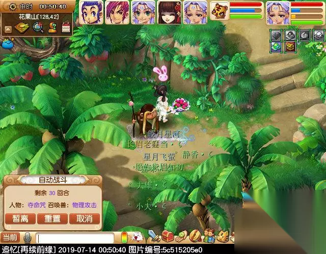 第二环节是消灭5个怪物,所以15个猴精解救完成之后,马上组队找怪了,时间紧张。