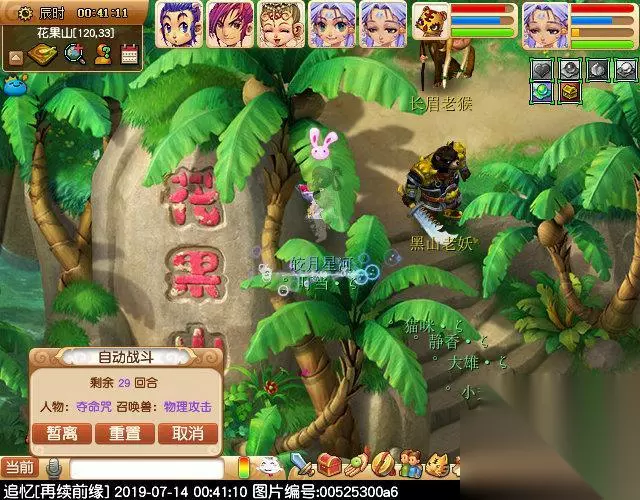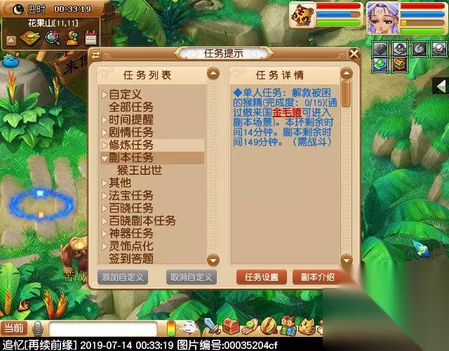 进入副本的第一环节是单人任务,解救被困的猴精15只,以前是可以多人同时A一个猴精的,现在只能1只猴精被1个角色A