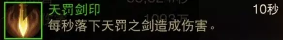 天罚剑印是一个大范围的BUFF,可以让你和你的召唤物都得到剑印的收益,剑印每秒会在你的位置落下打单体伤害,所以你需要和怪物贴脸打伤害,不然剑印落下的位置很难打到怪物,同时这个技能还有一个缺点,如果你和召唤物同时站在一起落下天罚之剑,那么伤害会衰减至30%,注意不是减少30%,等于减少了70%。不然我们召唤10个单位站一起开剑印伤害就太猛了,设计师还是考虑了技能的输出上限。
